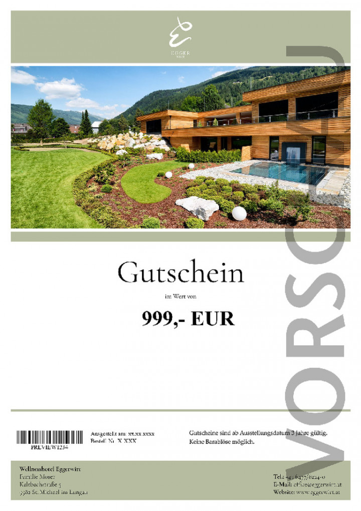 Wir wünschen ganz Viel Freude mit dem Gutschein, einen wunderschönen Aufenthalt bei uns im Wellnesshotel Eggerwirt****S und viele unvergessliche Momente.<br><br><br>Alles Liebe,<br>Familie Moser und das gesamte Eggerwirt-Team